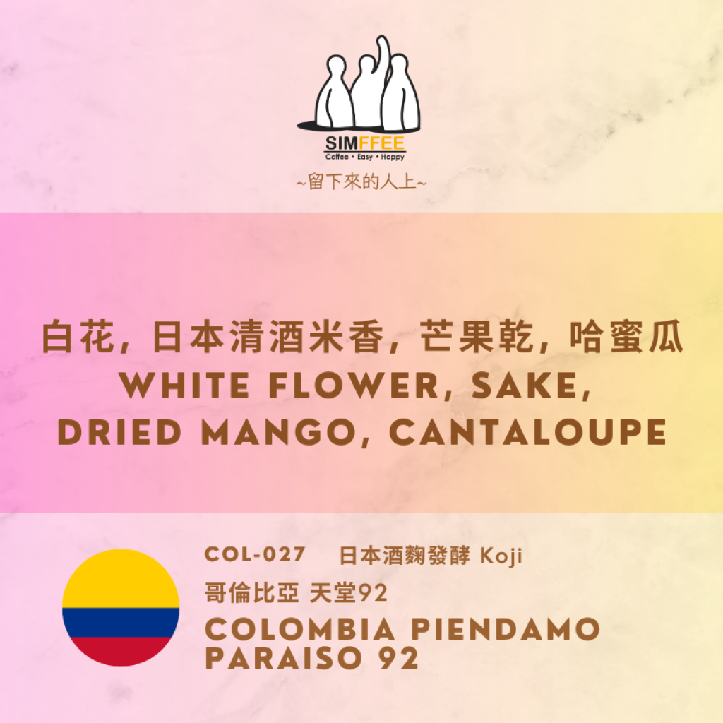 哥倫比亞 天堂92 日本酒麴處理 Colombia Piendamo Paraiso 92 Koji